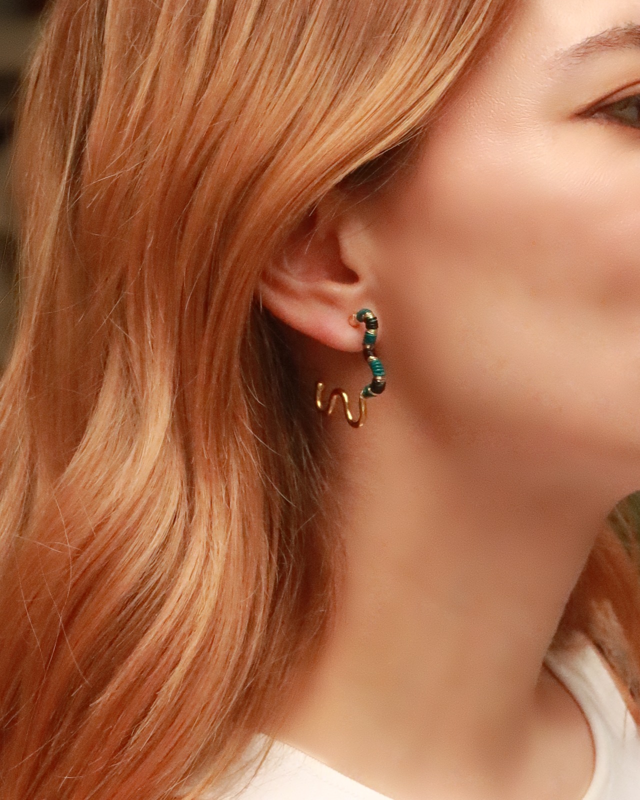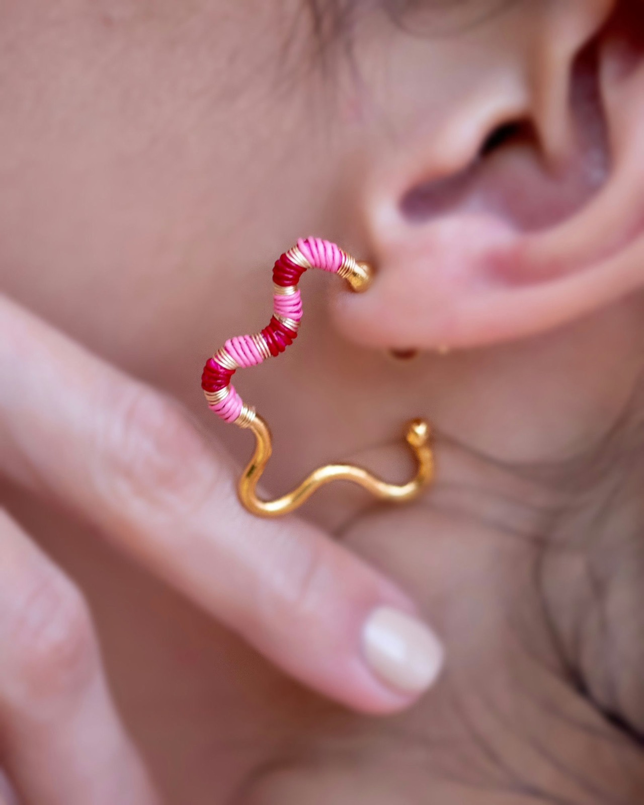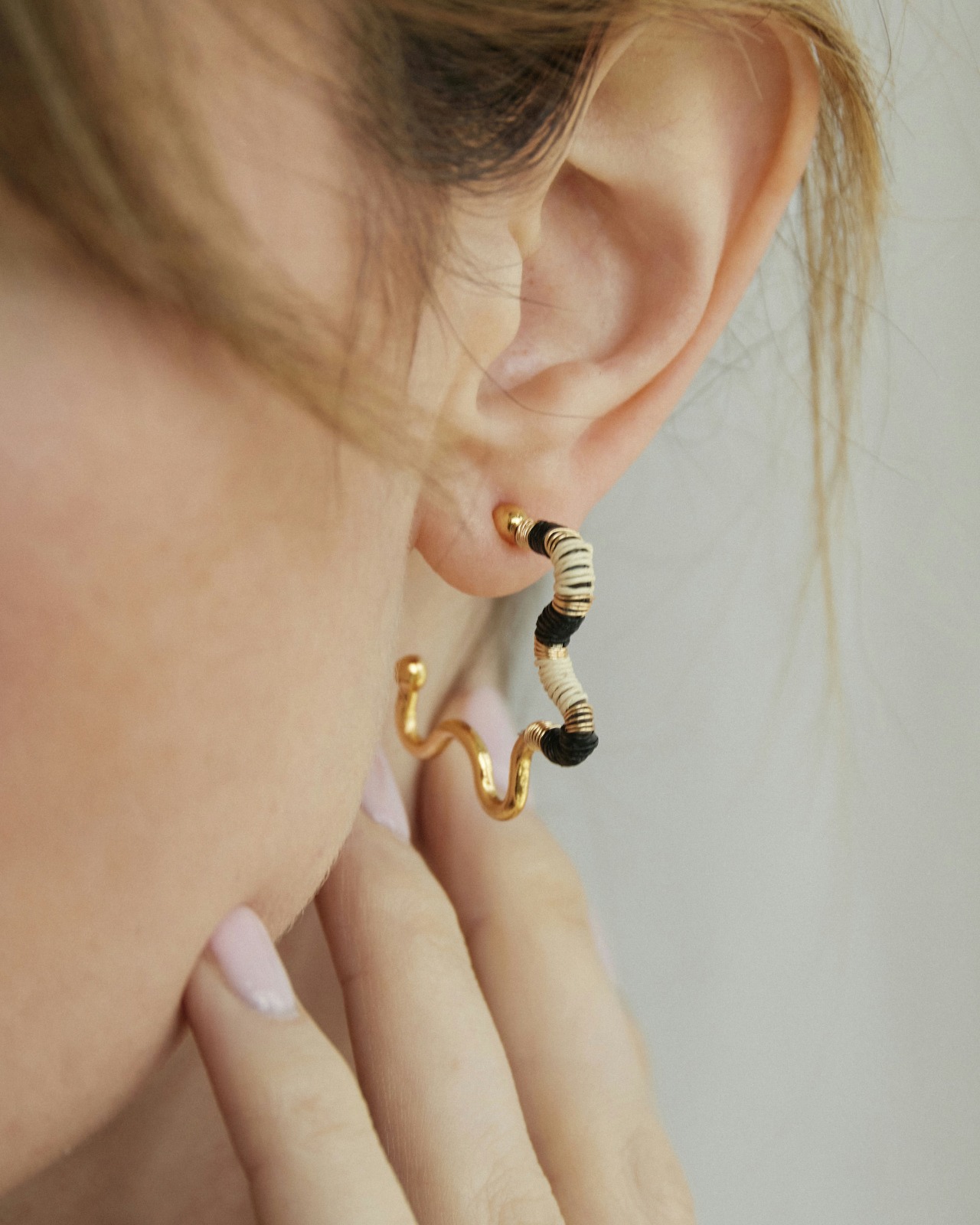 Material: Bronce bañado en oro de 24k, palma Werregue e hilo dorado.