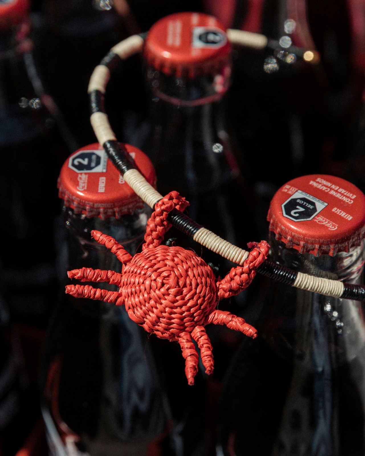 Material: Bronce bañado en oro de 24k y tejido con fibras de la palma Werregue.