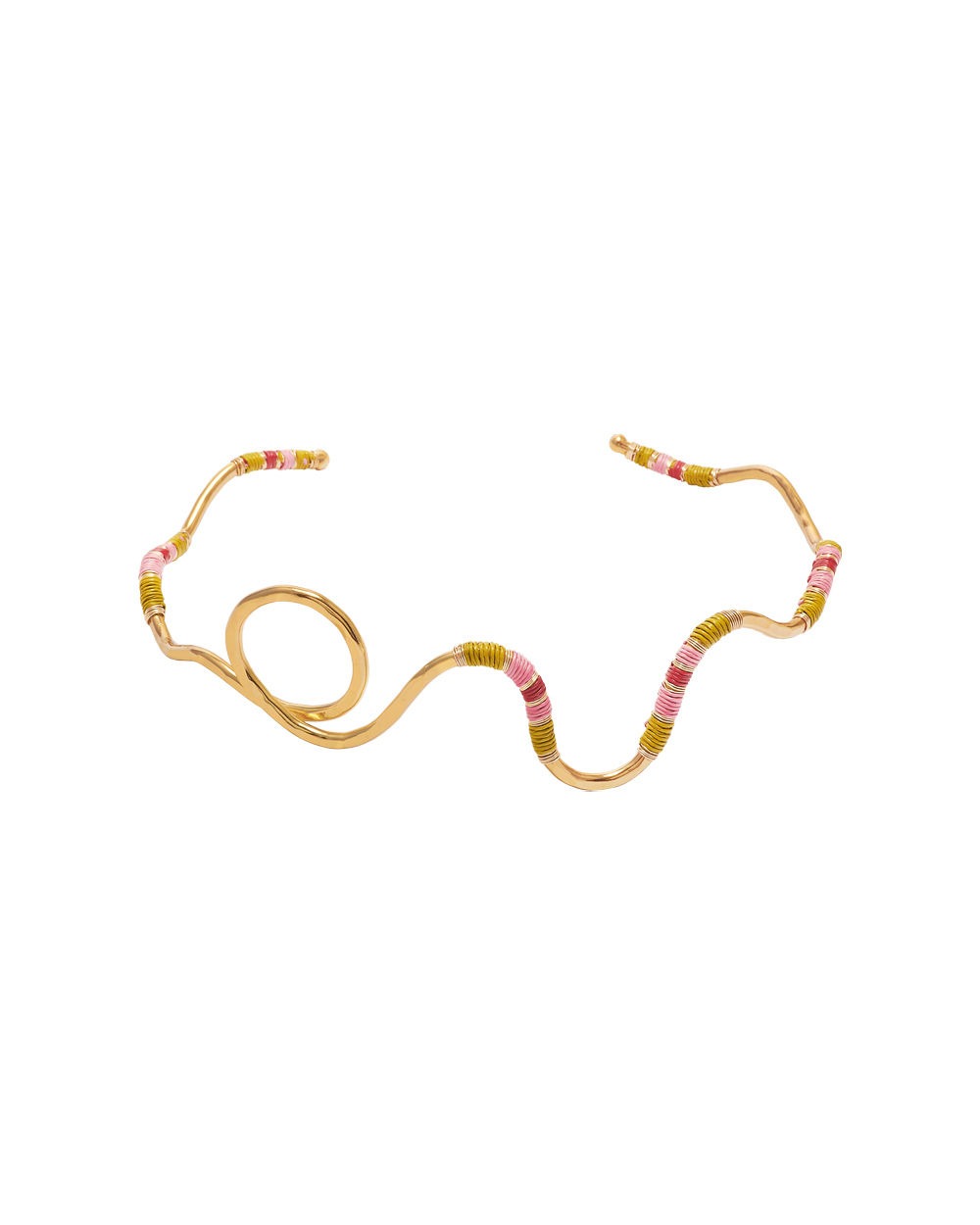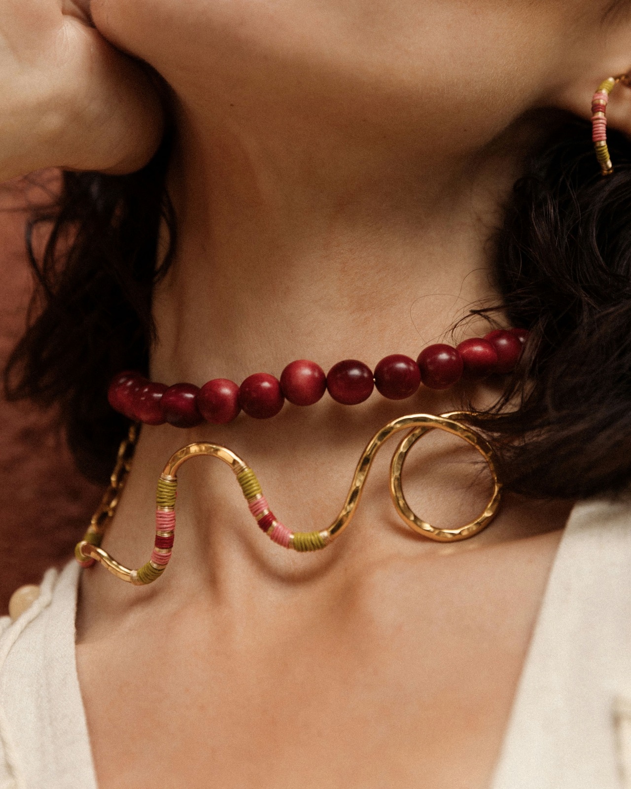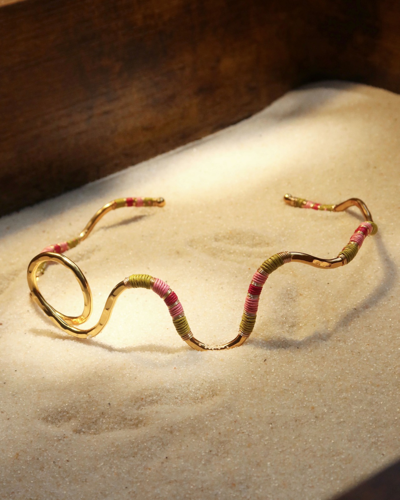 Material: Bronce bañado en oro de 24k con hilo de fibra natural de palma werregue.