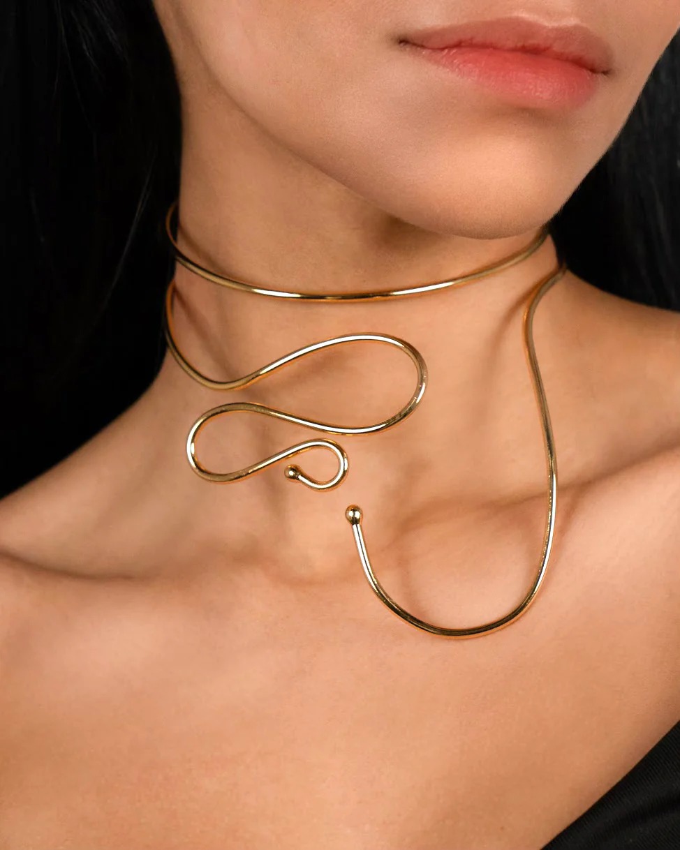 Material: Bronce bañado en oro de 24k con hilo de fibra natural de palma werregue.