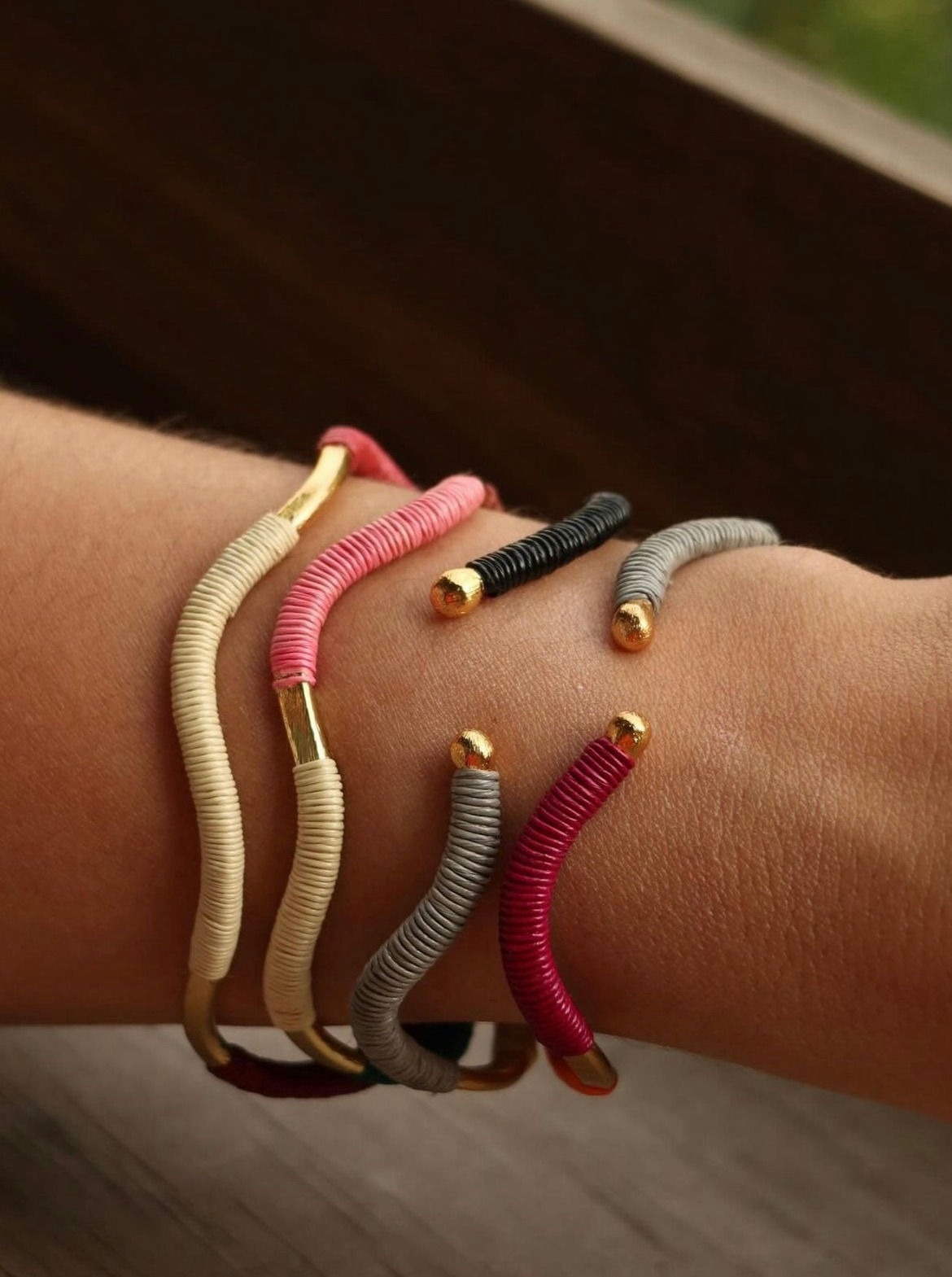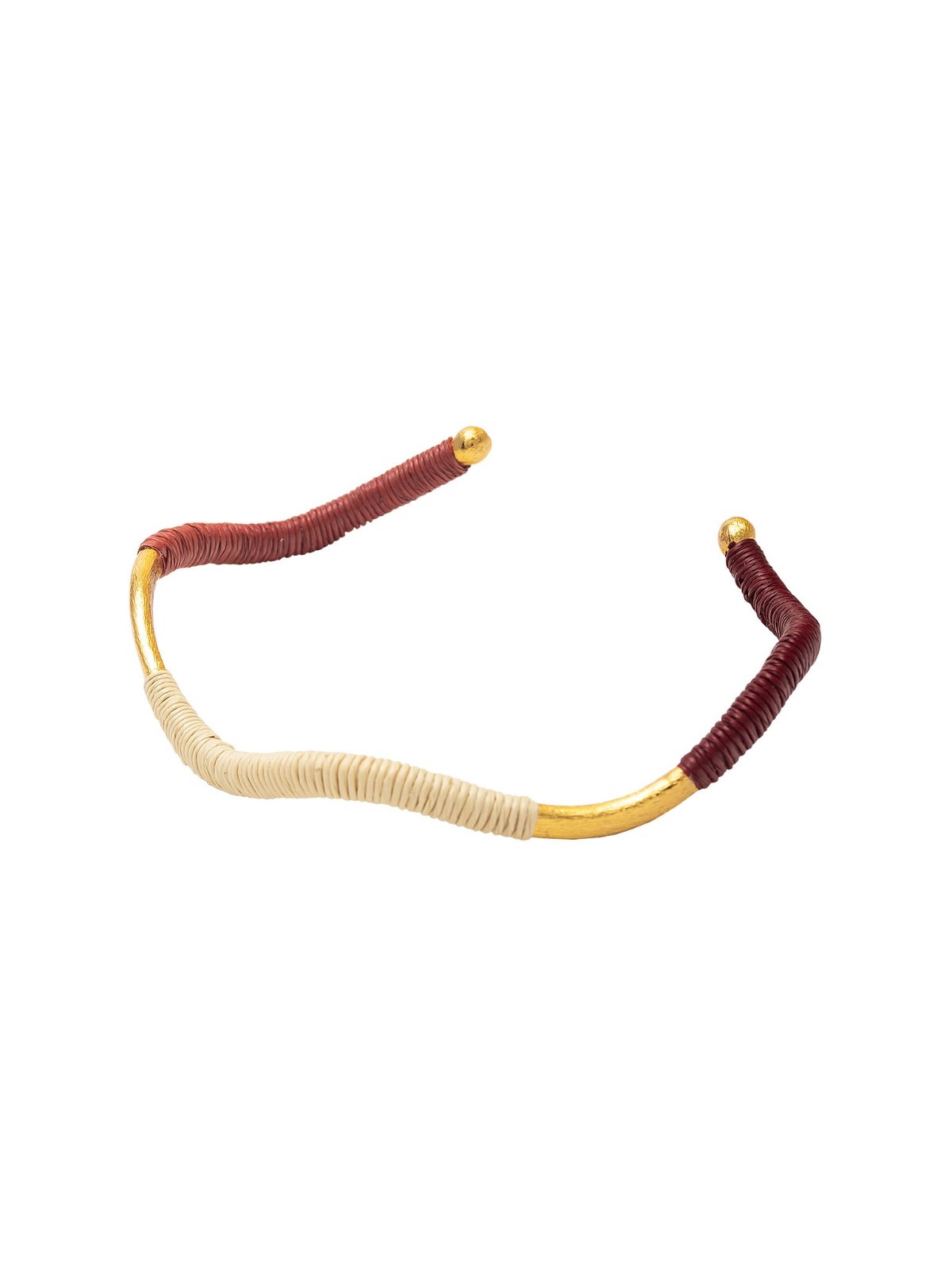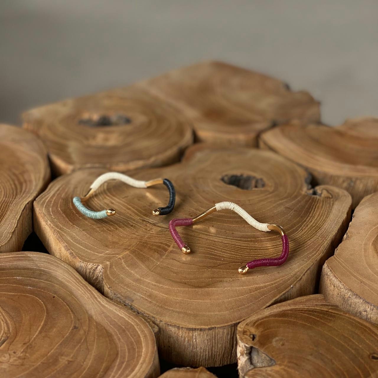 Material: Bronce bañado en oro de 24k con hilo de fibra natural de palma werregue.