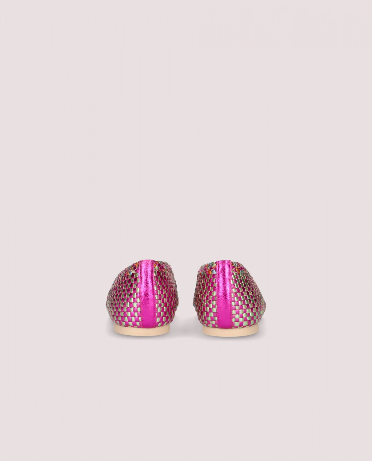 Ballerina Ella with a pointed toe in multicoloured woven leather with rubber sole, leather insole and lining.