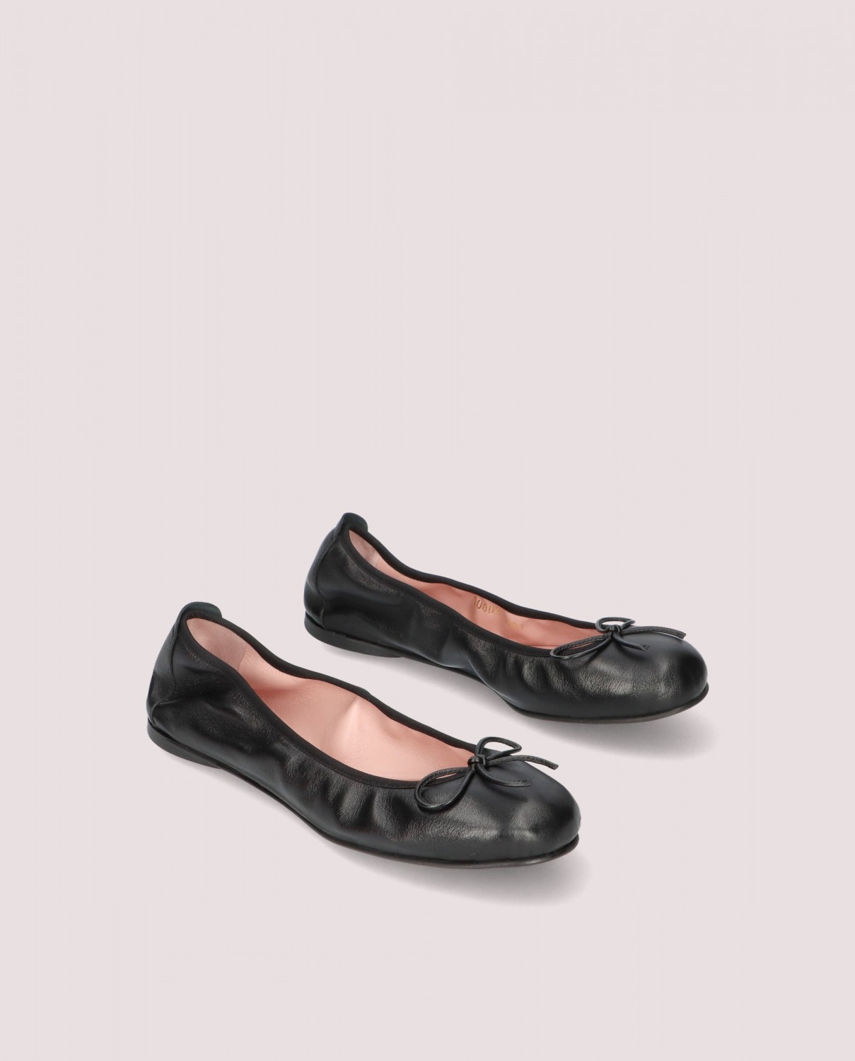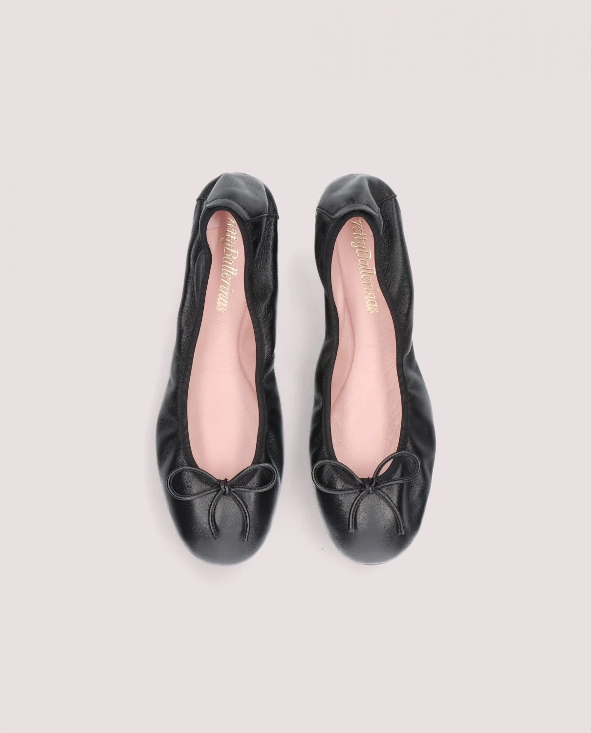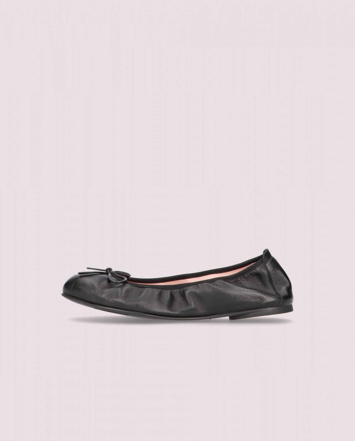 Sacchetto style ballerina Lea with elasticated trim in soft black leather with rubber sole, leather insole and lining. Unlike traditional shoe construction, Sacchetto involves stitching the inner lining directly to the sole, eliminating the need for insoles and providing a glove-like fit. This technique ensures maximum flexibility and comfort, allowing the shoe to adapt to the foot’s natural movements. The result is a sophisticated and luxurious footwear experience that seamlessly blends style and comfort in every step.