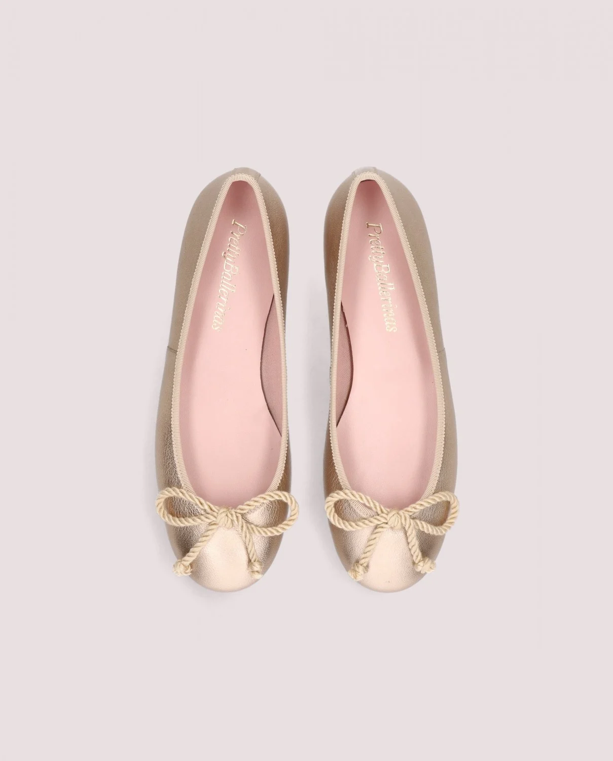 Low cut ballerina Rosario in soft champagne gold metallic leather with thick lace, rubber sole, leather insole and textile lining