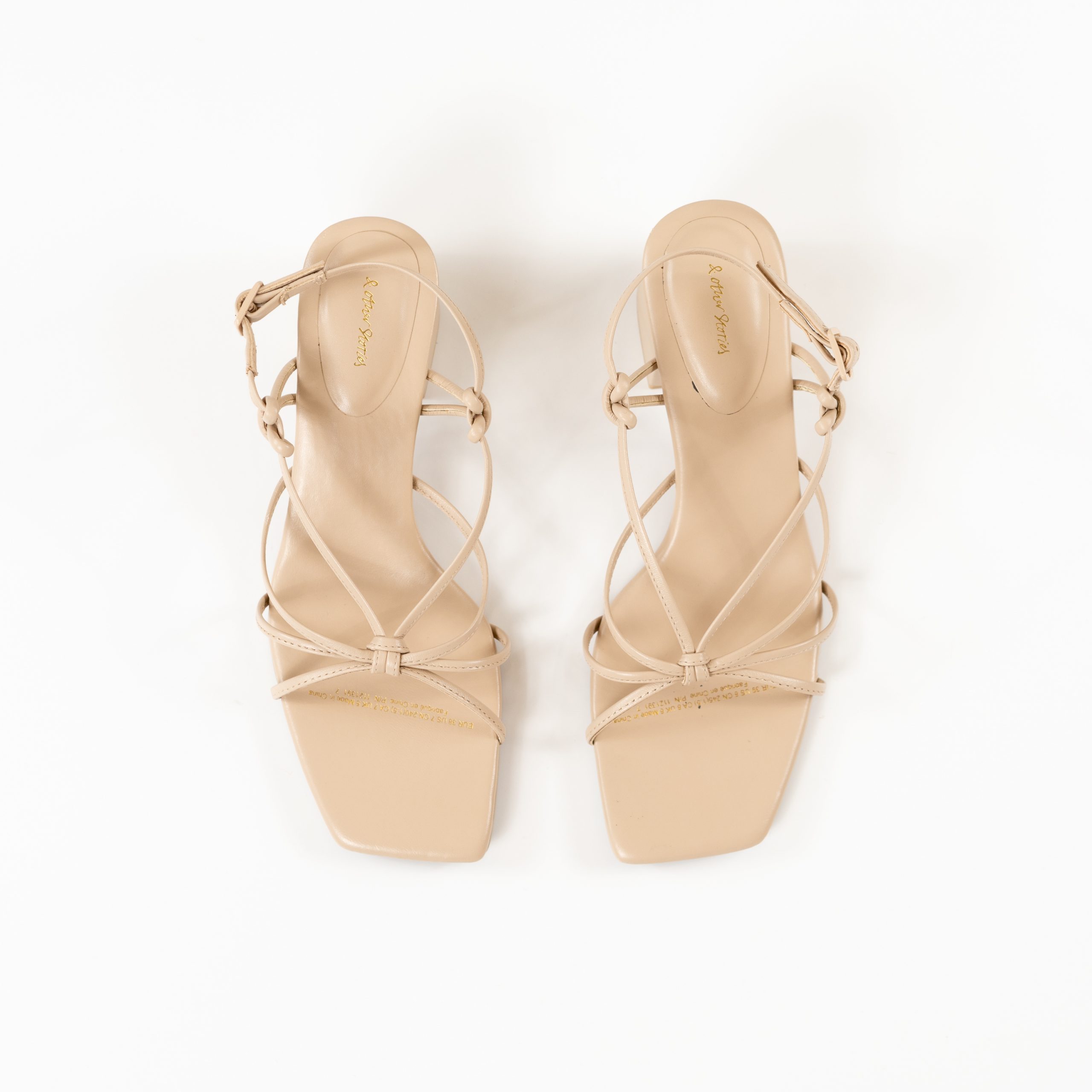 Strappy square-toe leather sandals featuring stacked block heels, knotted details and adjustable back straps with delicate buckle closures.