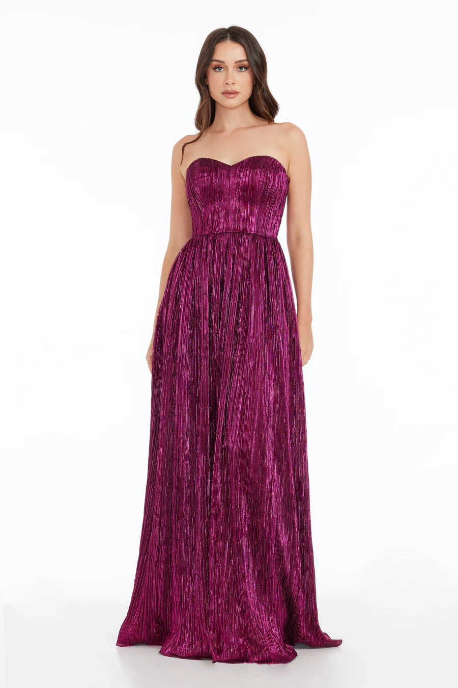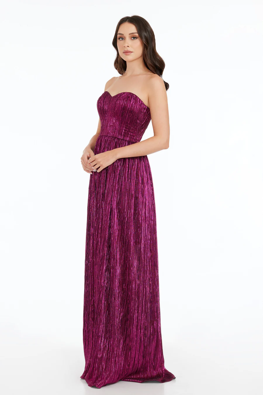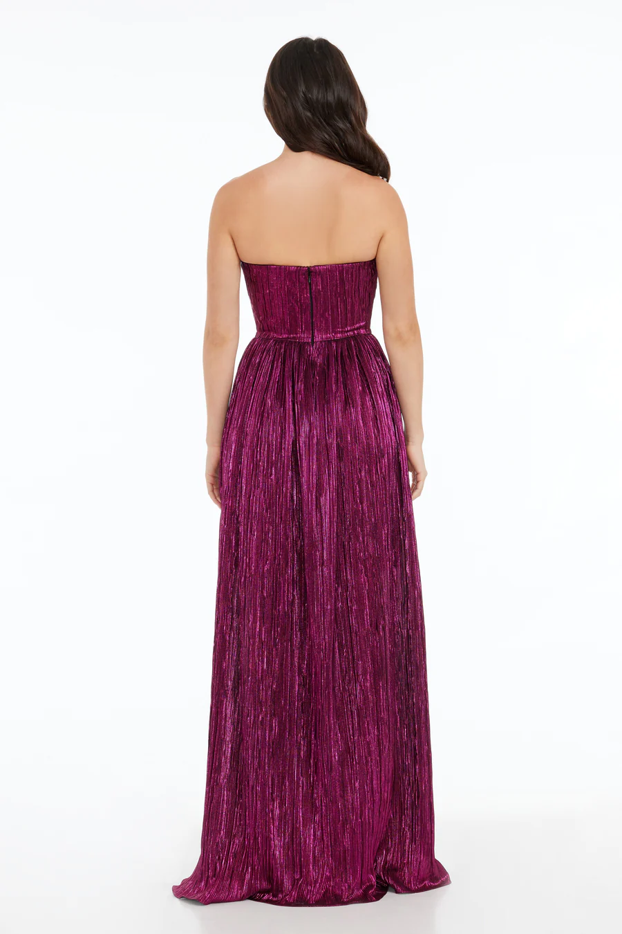 A timeless classic, the Audrina dress is a versatile and stylish choice for any formal event. Featuring a strapless, demi busiter design, this pleated gown is sure to turn heads. Crafted from luxe fabrics, this dress will provide all-day comfort and confidence.