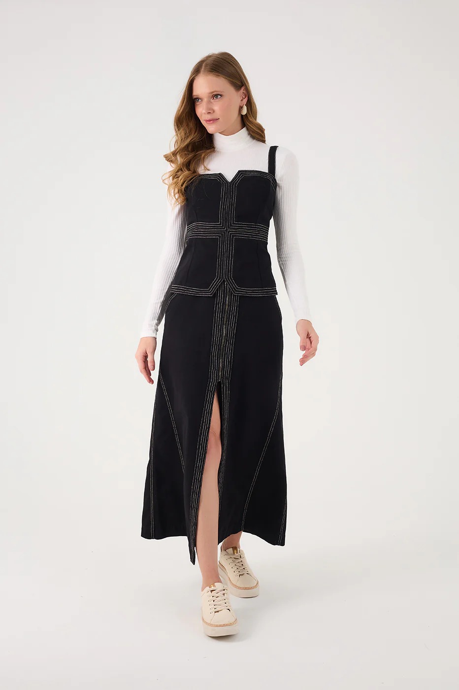 Our Black Front Slit Pockets Twill Maxi Skirt is crafted from unique fabric, featuring a versatile length, high waist, seam detailing, pockets, a zipper, and a front slit that adds extra charm to your look!