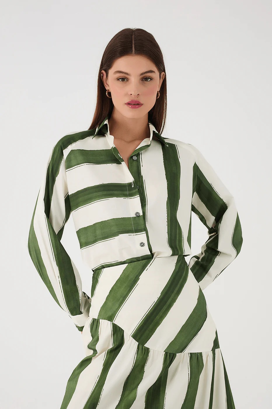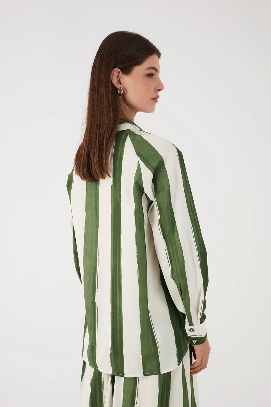 «The best choice for creating elaborate and sophisticated looks. The Green Natureza Printed Buttons Collared Shirt features an elongated length, a collar, a front button closure, long sleeves, and fitted cuffs. It’s also made using eco-friendly and sustainable practices. Caring for 100% cotton pieces is essential to maintaining their quality and beauty. Here are some simple tips: – GENTLE WASHING: wash your clothes on a gentle cycle, with cold or warm water, to prevent shrinkage and preserve colors. – NATURAL DRYING: avoid the dryer by hanging clothes outside or on a clothesline to dry naturally. – AVOID BLEACHES: harsh products can weaken fibers and fade colors. Use mild detergents. – PROPER STORAGE: store clothes in well-ventilated areas, away from direct sunlight, and hang them flat to prevent wrinkles. Choosing 100% cotton styles means opting for comfort, durability, and sustainability. With proper care, your pieces will remain beautiful and comfortable for many years to come.»
