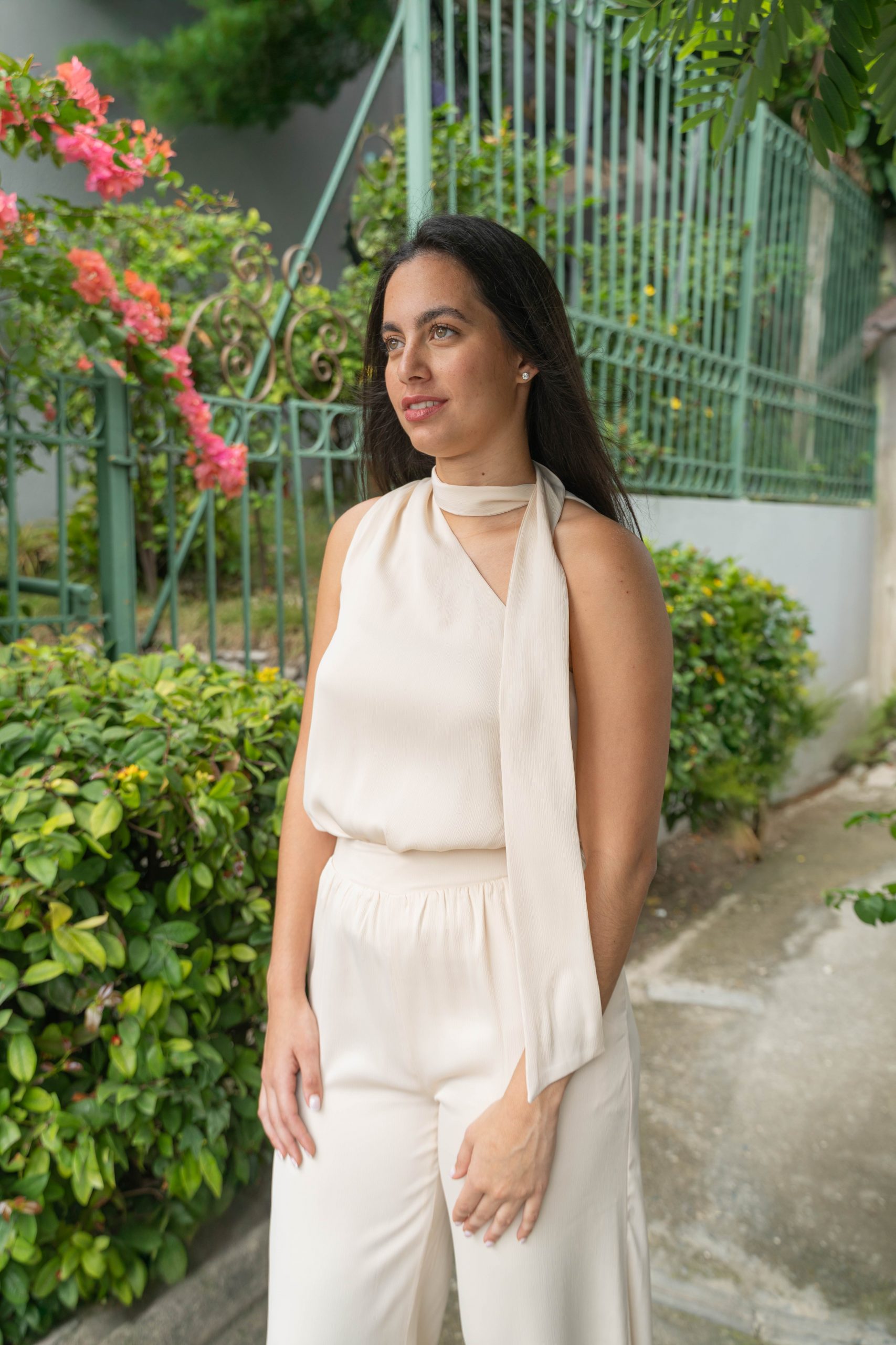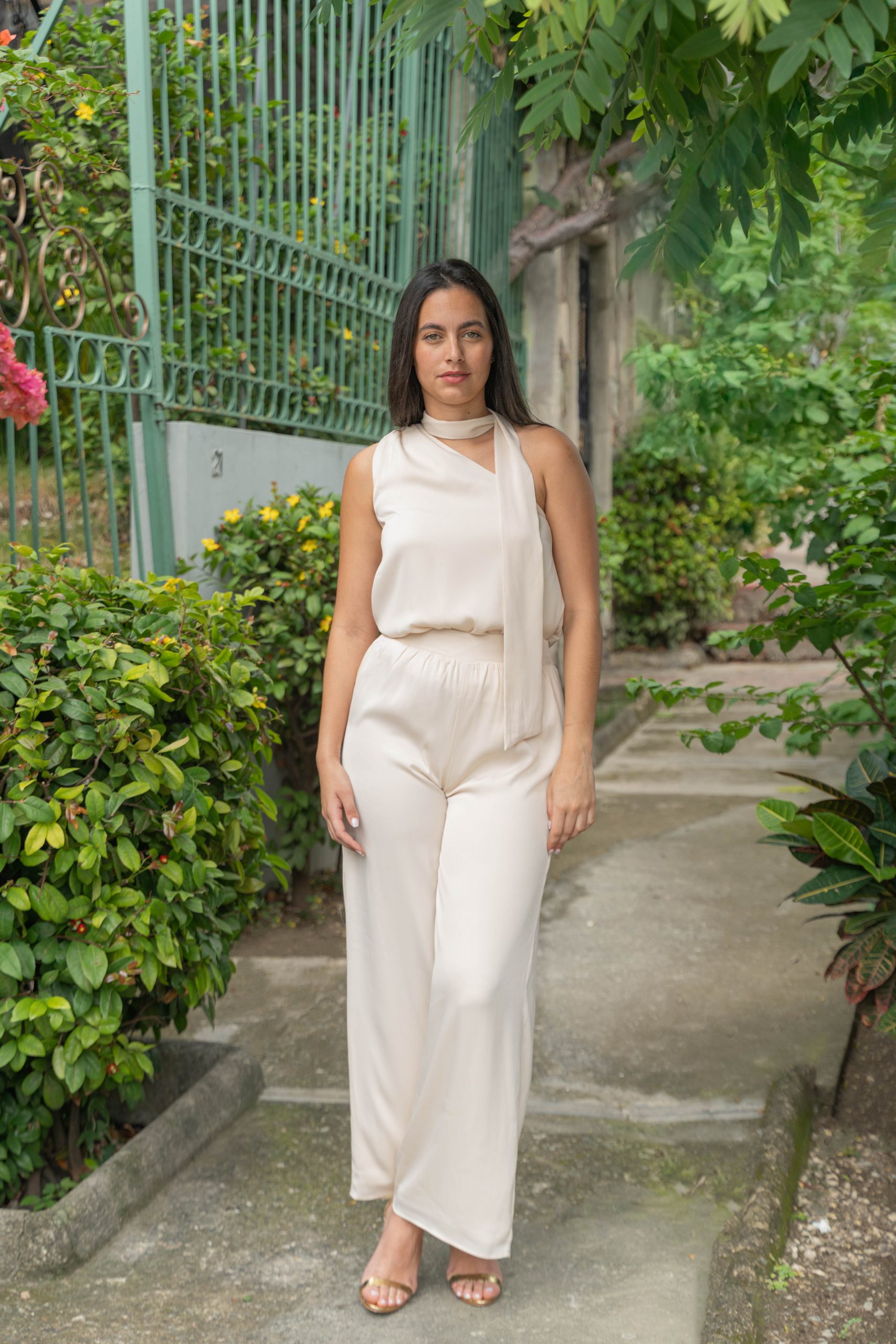 Satin wide-legged trousers featuring front pockets. Part of a matching set with the Lisette Top.